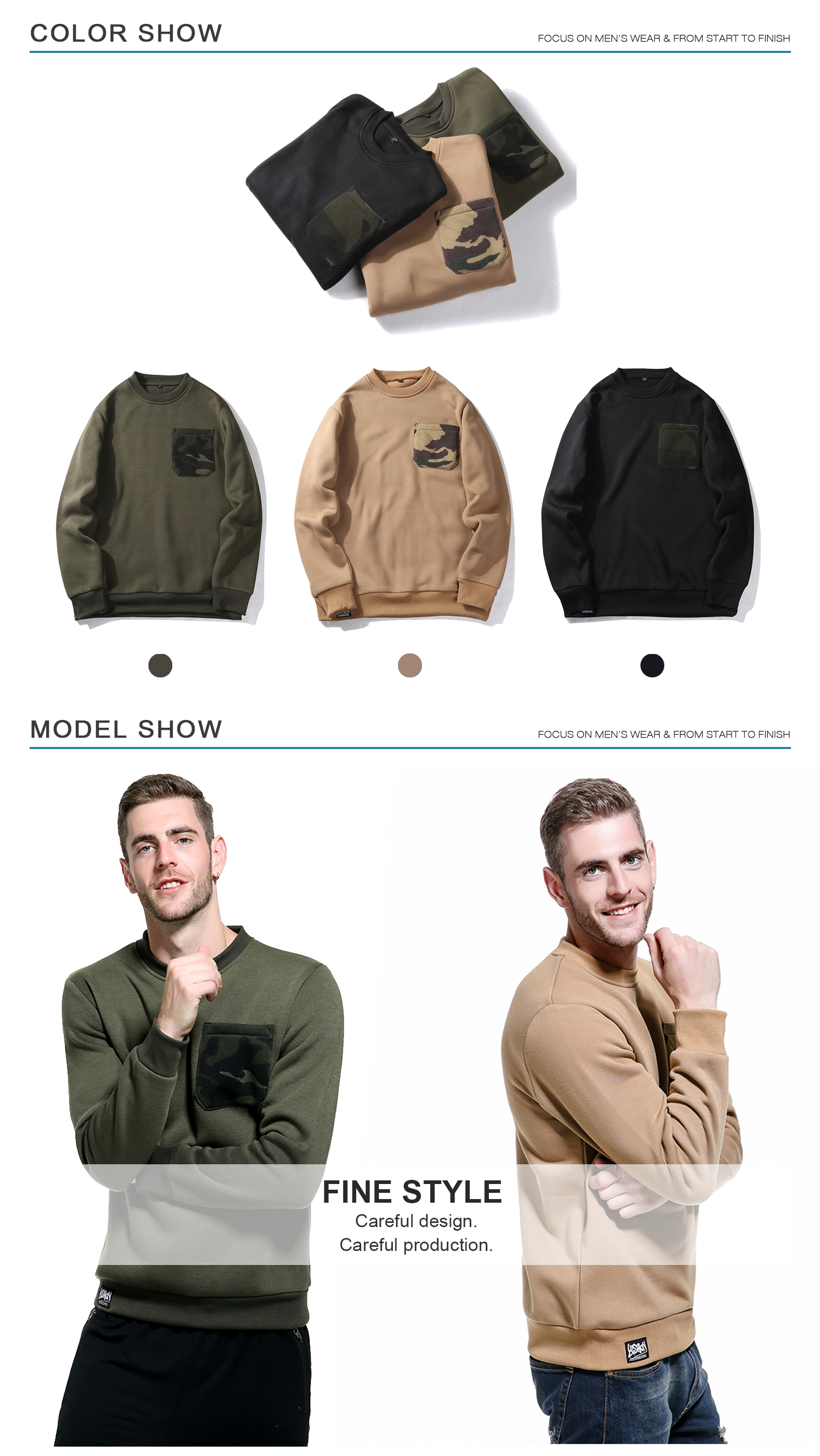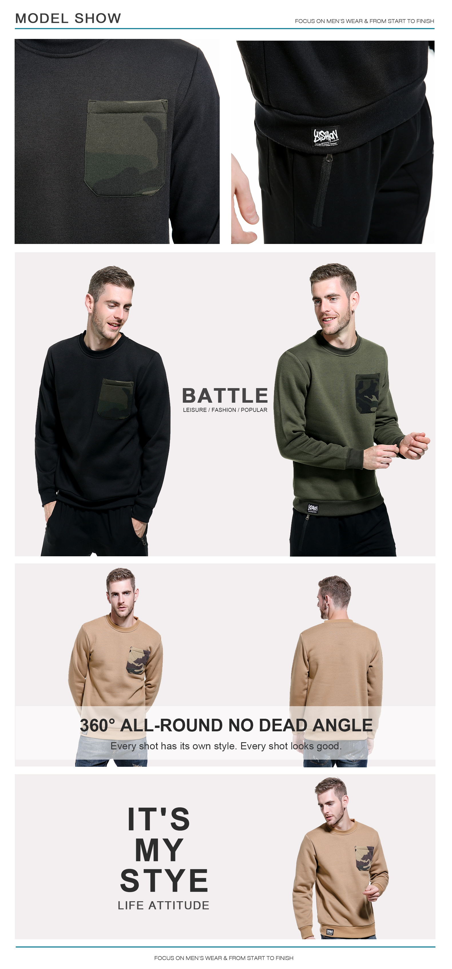 סוודרים סוודרים עם צווארון רגיל סתיו מותאם אישית הסוואה סווטשירט צווארון צווארון מזדמן