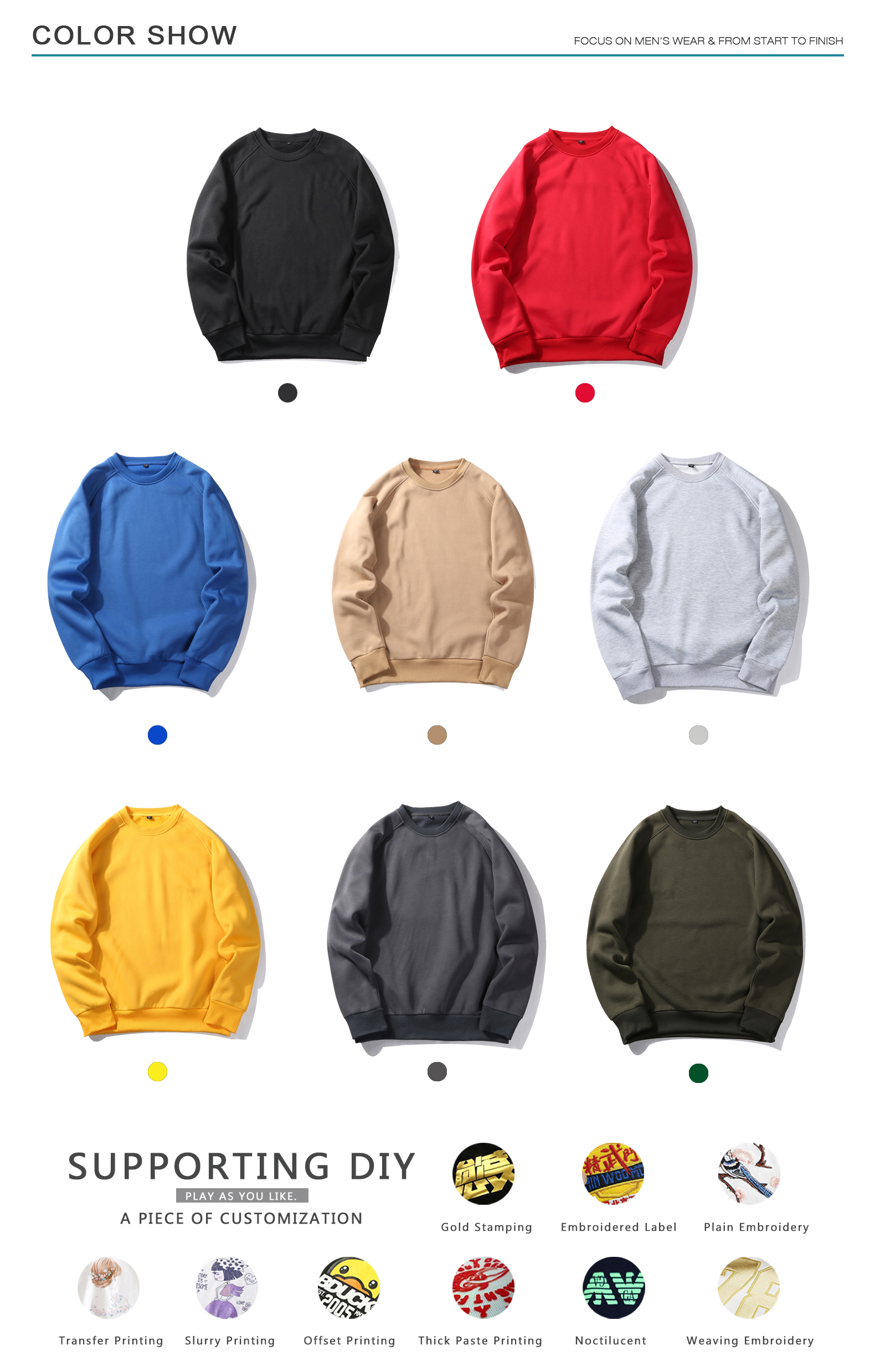 גברים מותאמים אישית בתוספת גודל רקמת מודפסת בגדי רחוב סווטשירט צווארון צווארון רגיל
